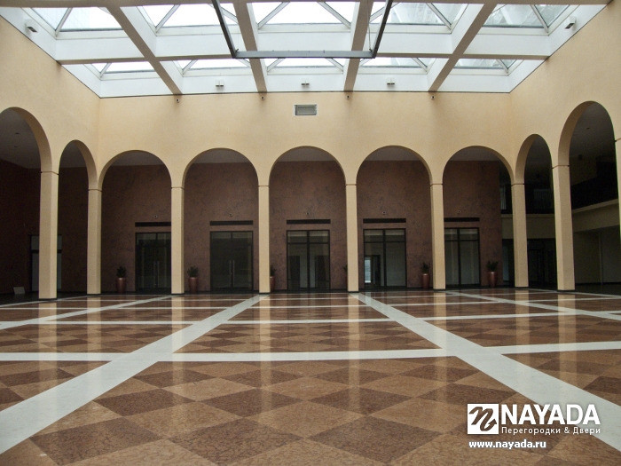 После долгого согласования с проектной организацией был подписан контракт на изготовление противопожарных перегородок UALCOM Fireproof EI-60, в одной из главных административных зон стадиона – Итальянском дворике (позже переименованном в «Спортивный дворик»). Так же по спецзаказу из противопожарного профиля, в таком же стиле и в одной концепции для сохранения стилистики, компанией UALCOM изготовлены перегородки с использованием многослойного стекла «триплекс» толщиной 25 мм. Уже в этом году в зоне «Спортивного дворика» проводились такие значимые мероприятия как: презентация мяча «TANGO 12» к ЕВРО-2012; презентация «Porshe 911» в Украине и другие.